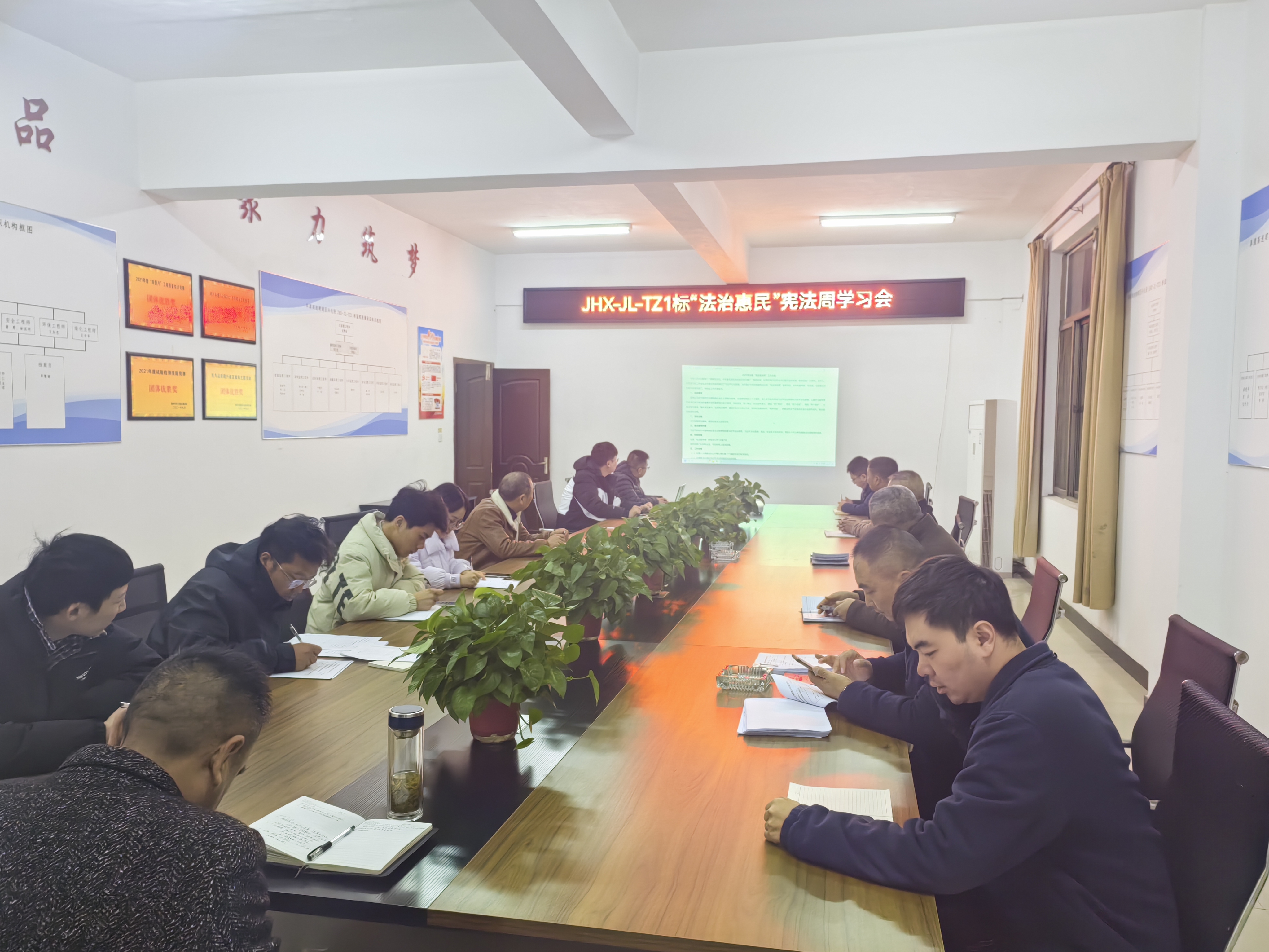 开展“法治惠民”宪法宣传周学习活动。走进监理公司阜溧高速泰州监理1标、盐阜快速通道YFDJL1标开展“法治惠民”宪法宣传周学习活动,与农民工共同学习宪法、民法典、以及与农民工生产生活密切相关的法律法规,还采用以案释法的普法形式开展反诈宣传,同时详细介绍如何下载并使用国家反诈中心APP,进一步提高农民工反诈意识和辨识诈骗的能力,鼓励并引导参会人员要引领身边人尊法学法守法用法。