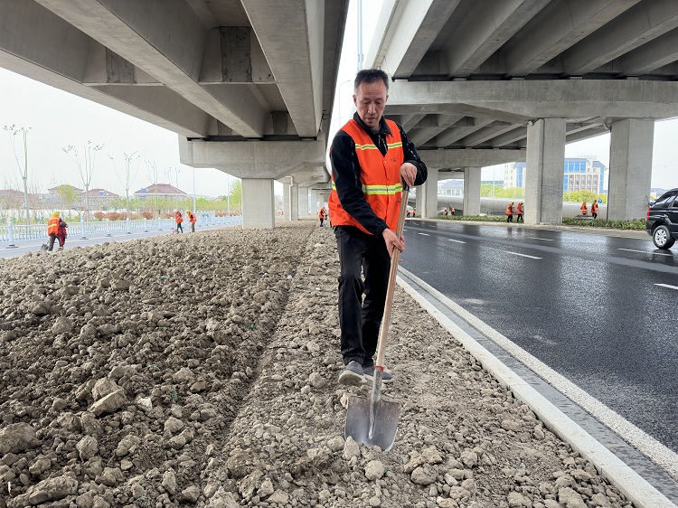 他用质朴的行动践行着绿化人的初心。每年春季是绿化任务最重的时期,有时候还会遇上突击任务,要在很短的时间内完成现场平整和种植任务,给现场也带来了很大的挑战和困难,但他从来不向领导讲困难,只要任务一下达,他会立即组织人员展开施工,不论风吹日晒,他都会努力保证工期。夏天是绿化养护的高峰季,顶着烈日,他的身影总是会出现在每个管护项目的现场,和工人一起打药、浇水、修剪、整地。秋冬季节,天气渐冷,树叶飘落,这是树木能否顺利过冬的重要保障阶段,每到这个时节,他便组织人员进行治虫、冬灌、包裹,保证苗木来年能够正常生长。这就是他的四季,这样日复一日的工作,苦归苦,累归累,当看到树木逐渐有了阴凉,鲜花逐渐绽放,他心里除了满足还是满足。