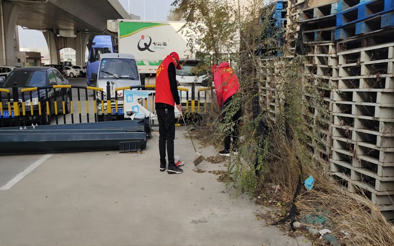 活动中,公交青年志愿者们身穿公交“红马甲”,拿着扫帚、火钳、簸箕等清扫工具,分组深入公交场站的各卫生死角,重点对周边杂草处的纸屑、果皮、烟蒂等垃圾进行彻底清洁,还场站一个干净卫生的环境。
