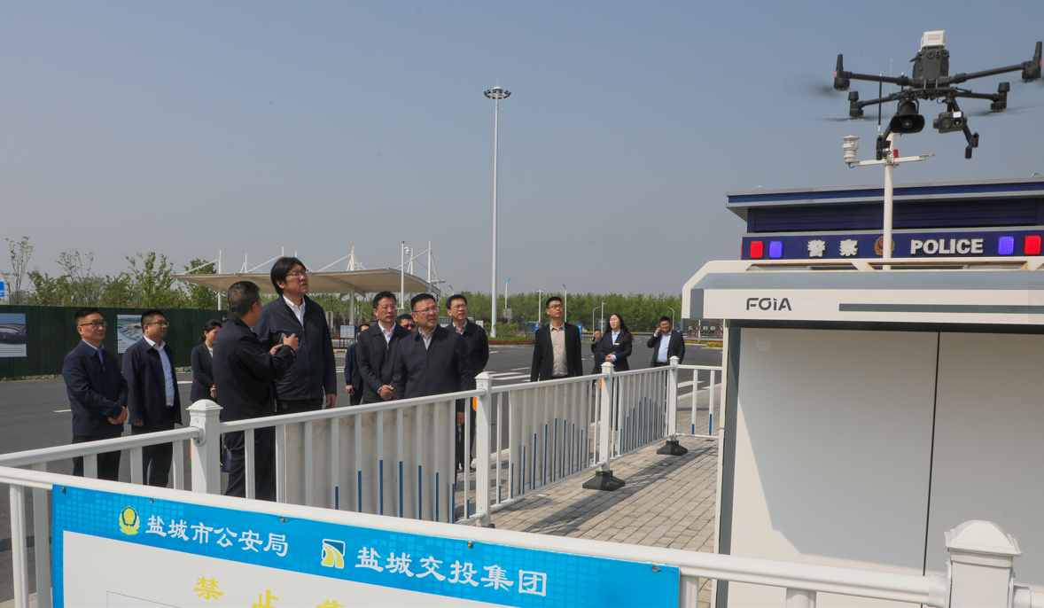 调研组一行先后参观了黄尖服务区危化品停车场、“司机之家”“盐路红旗飘”党群服务中心,浏览服务区有声电子图书墙,并走进交警支队228国道大队黄尖中队黄尖服务区联勤指挥部,观看黄尖服务区的无人机常态化自动巡航系统。