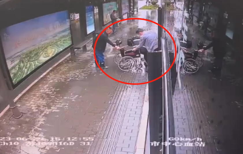 看到这一幕,蔡凤明马上从驾驶室出来,小心将女士扶上车安置在爱心座椅,随后又帮其把轮椅搬上车并问清其下车站点。当车辆抵达市中心血站站点时,蔡凤明再次从驾驶室出来,将这位残疾女士和其轮椅送下车。蔡师傅的暖心服务被监控记录了下来。