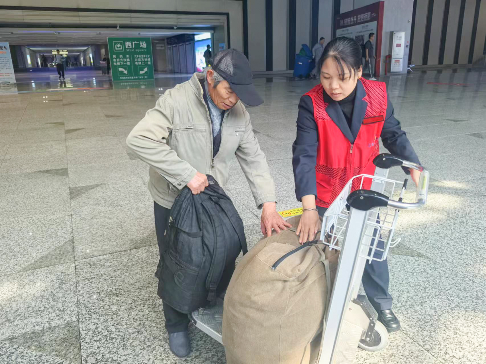 在高铁站出站口处,“一路有我”志愿服务团队常态化开展尊老、敬老、爱老、助老的志愿活动,用实际行动表达了对老年人的尊敬和关爱。