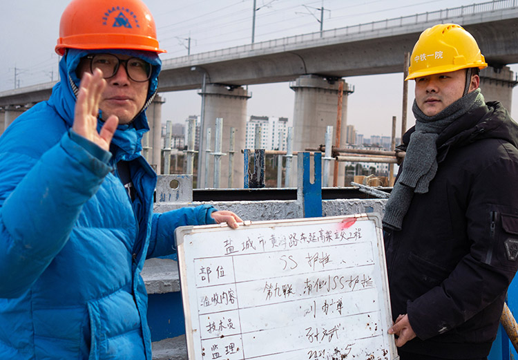 元旦期间,随着最后一跨钢箱梁在吊装到位后,意味着至1月5日起基本实现铁路立交段高架主体的贯通,为整个黄海路高架在春节前的建成通车增添了保障。工人们顶着严寒,加紧进行梁体联结焊接施工,与此同时,现浇段也利用当前气温稍有回升的良机,挑灯夜战,不着不让地加速推进护栏和桥面铺装施工,预计到本月中旬,整个桥面将将具备沥青摊铺施工条件。