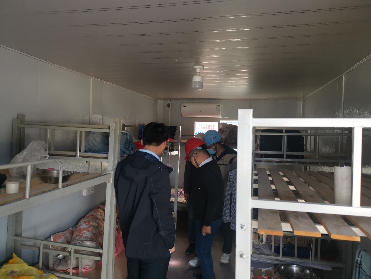 为确保疫情防控期间,项目建设工作不断档、不脱档,项目部坚持疫情防控和项目工作“两手抓、两不误”,把工地一线防疫工作作为安全生产的一项重要内容,除工地的每个进出口设置防疫检测站,对外来人员进行测温消毒外,所有建筑工人在上岗之前,都必须先通过资格审查,提交核酸检测报告、轨迹查询截图,并对所有进场的员工全部实行封闭管理,统一采购配送生活物资。